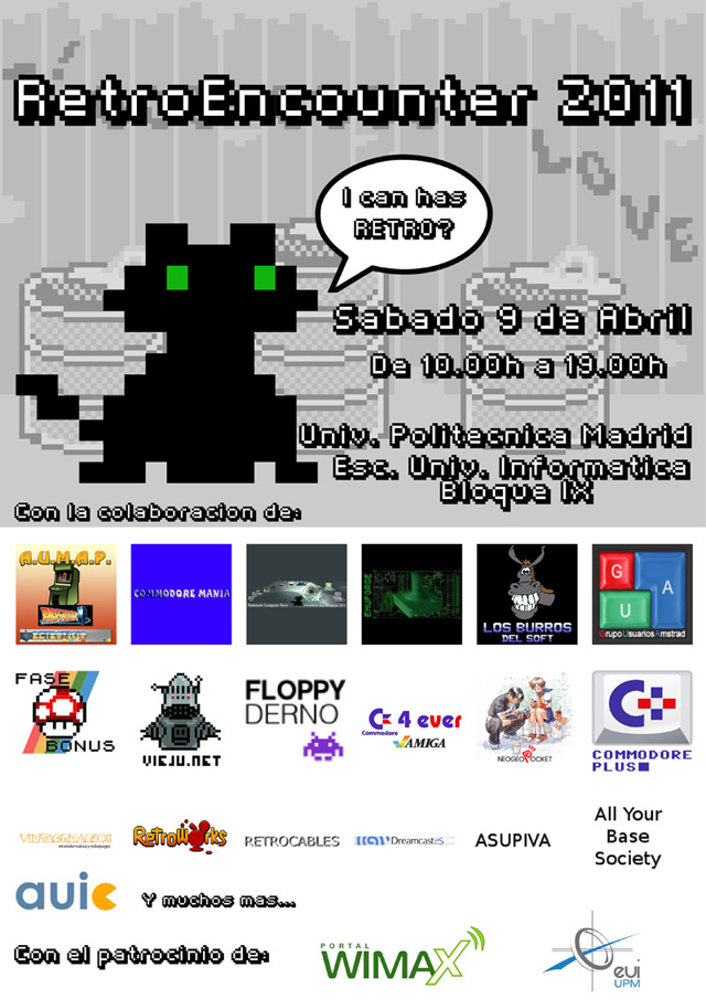 Este próximo sábado 9 de Abril, se celebra en la Universidad de Informática, en Vallecas, la primera RetroEncounter, todo para que no nos quedemos sin nuestra ración de retro.