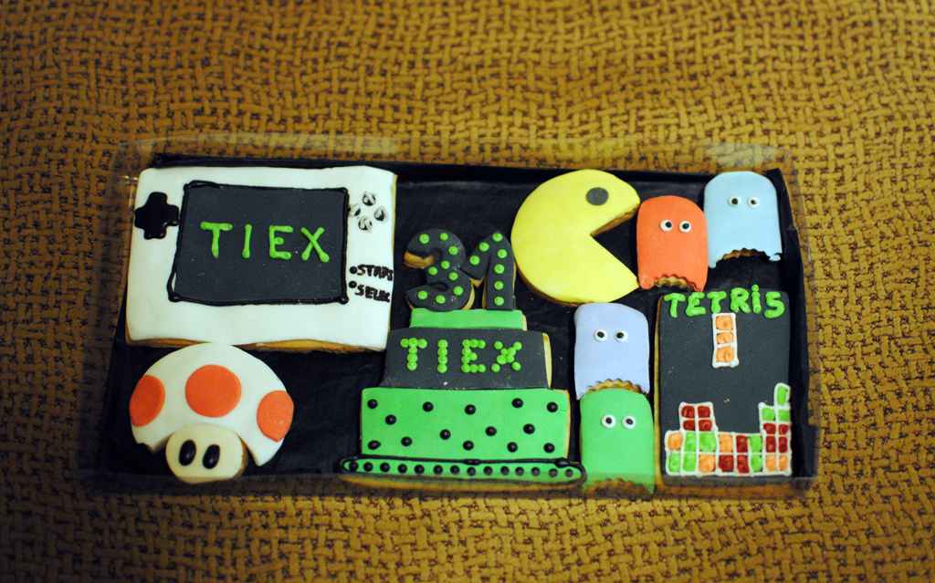 No son muñecos y están hechos para mí. Son galletas o pastas, con formas basadas en videojuegos como: Tetris, Pac-Man y Super Mario ¡Hasta viene una consola portátil que se come! Increíble regalo, que vino en manos de mi chica 😀 y que es obligatorio enseñar, por eso quería mostrarlo aquí.