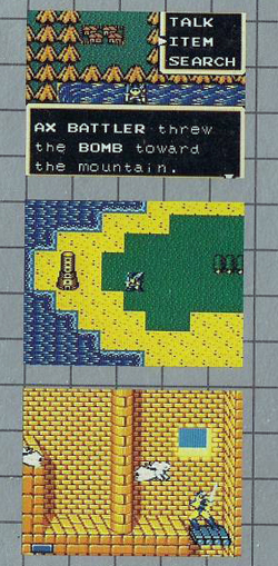 Este juego lo compré por lo curioso que resulta, ya que se trata de un juego de la saga Golden Axe, pero que nada tiene que ver con esta, en cuanto a planteamiento jugable. Viendo las capturas de la contraportada de la caja, el juego se puede asemejar al Zelda 2 de NES – como bien dijo Alejandro cuando lo vio – aunque yo le encuentro más parecido al Gargoyle’s Quest de Game Boy, por el parecido en el apartado grafico – seguramente que use un motor parecido, por no decir el mismo – y jugable del juego. Deciros que aun no lo he probado, no he tenido la ocasión, pero que lo haré en breve.