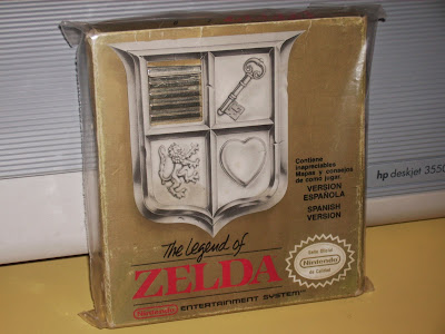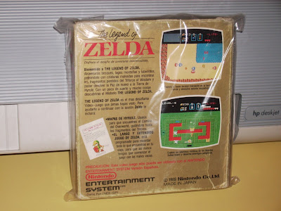 Sí, el primer The Legend of Zelda para NES. Primero lo cogí, mire si tenía todo y me di cuenta de que le faltaba el manual. Lo volví a dejar sobre el puesto y seguimos dando una vuelta por la feria. Pero no tardé en volver y hacerme con él, el ansia y que era un Zelda que no tengo. Según me dijeron se trataba de una edición un tanto especial, ya que el embalaje del juego no era el típico de la caja alargada. La de esta edición es un poco más pequeña, más o menos del tamaño del cartucho. Además también era la del cartucho dorado y el embalaje estaba en buenas condiciones, así que no puede resistirme y se vino a casa conmigo.